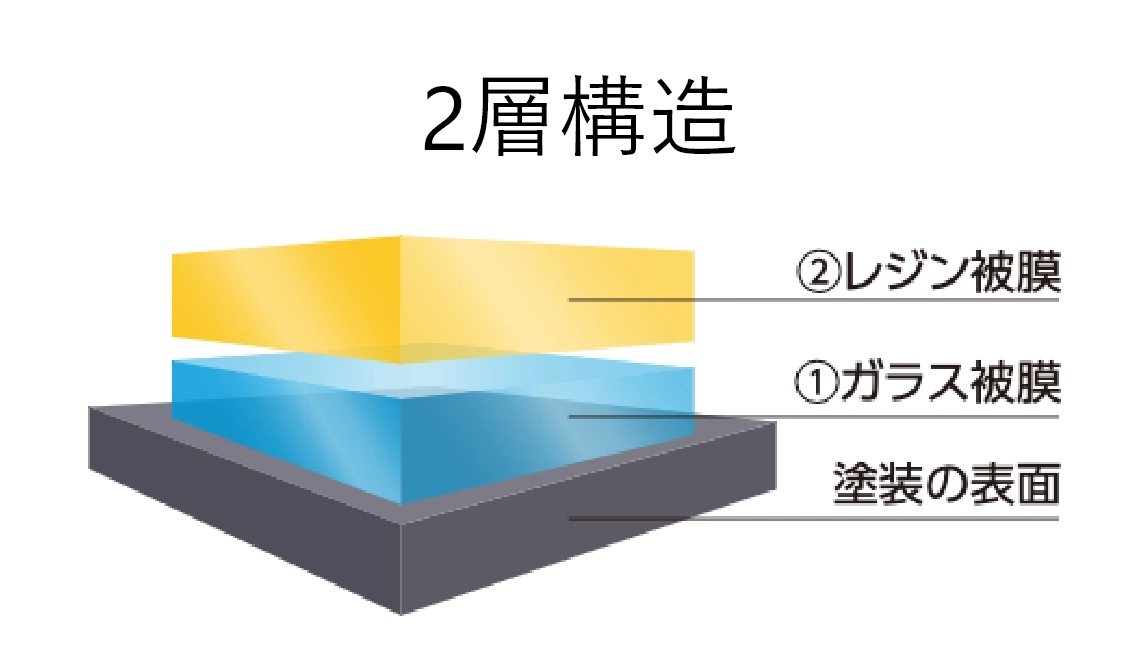 2層構造だから、他のコーティングと比較して層が厚くキズが付きにくい!そのため、下取り金額が高くつきやすく、15万円以上高くなった事例も。愛車の価値を長く保ちます。